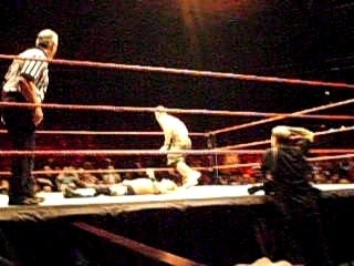 Spear de Edge sur John Cena lors du "Main Event" Raw Wrestlemania Revenge Tour 2007 de Paris Zénith.