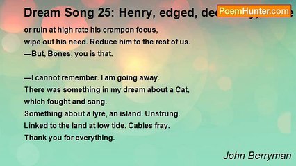 John Berryman - Dream Song 71: Spellbound held subtle Henry all his four
