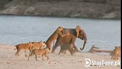 Young elephant survives attack by 14 Lions