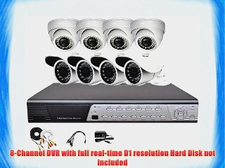 Buy on Amazon : br br iPower Security SCCMBO0005-1T 8 Channel 1TB HDD Full D1 DVR Security Surveillance System with br br 8-Channel DVR with full real-time D1 resolution 1TB hard drive included br 6 - 850TVL cameras with up to 70 feet night vision br 6 60 pre-made cables available in black or white br 1 12V DC 5000mA Power Adaptor 110V-240V AC Input br Power Cord Lead DC 1 to 8