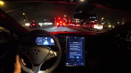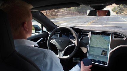 Test du pilotage automatique d'une Tesla Model S.
