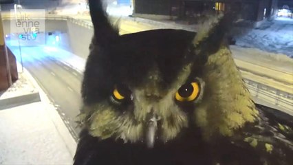 Snow Owl Videobombs Canadian Traffic Camera