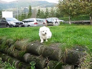 BDownload: , a Bichon Frise from France, in her pool.