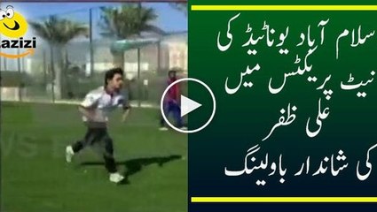 Ali Zafar bowling to the talented Left arm spinner and left handed batsman of Islamabad United, Imran Khalid.