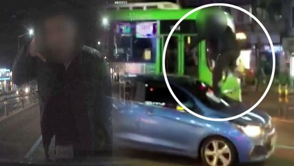 [단독] 차량 앞으로 뛰어들고 보닛에서 '꽝꽝'...만취 40대 입건 / YTN