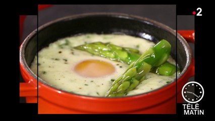 Oeufs cocotte aux asperges et à l'épinard