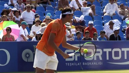 - Lorenzo Sonego - Carreno Busta karşılaşmasından detaylar - İzleyicilerden görüntüler - Yağmurdan korunmak için sporcuların şemsiye ile korunması - Hakem detayı ANTALYA (AA) - Türkiye'deki ilk çim kort turnuvası olma özelliği taşıyan ve 2017'de Profesyonel Tenisçiler Birliği (ATP) takvimine dahil edilen Turkish Airlines Antalya Open'da ikinci finalist, yağmur nedeniyle belirlenemedi.