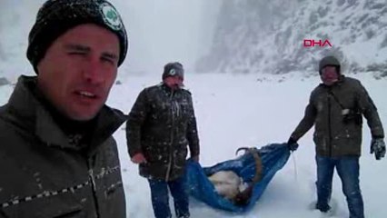 ADIYAMAN DAĞDA BULDUKLARI HASTA DAĞ KEÇİSİNİ SIRTLARINDA TAŞIYARAK KÖYE GETİRDİLER