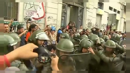 La police anti-émeutes chilienne procède à des arrestations lors de nouveaux heurts qui ont éclaté sur la Plaza Italia dans le centre de la capitale Santiago.