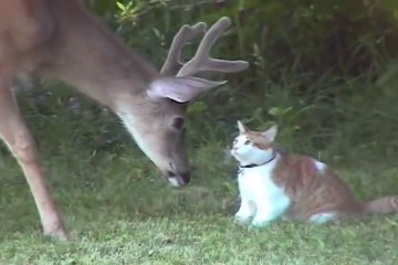 Amitié incroyable entre une biche et un chat