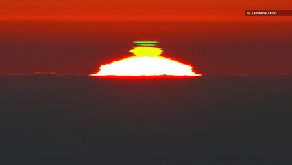 Photographer Mark McNeill captured this stunning video of the Green Flash and omega sunset over the Isle of Man from Blackpool.br br The Green Flash is a rare meteorological optical phenomena that can occur briefly around the moment of sunset because the earth's atmosphere can cause the light from the sun to separate out into different colours.br br This footage was filmed on May 13.