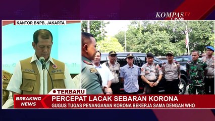 JAKARTA, KOMPAS.TV - Presiden Joko Widodo berkunjung ke kantor Gugus Tugas Percepatan Penanganan Covid-19 di Graha Badan Nasional Penanggulangan Bencana (BNPB), Jakarta, Rabu (10062020). br br Jokowi tiba di lokasi pukul 10.10 WIB. br br Kepala Negara mengenakan kemeja putih dan masker abu-abu. Setibanya di lobi depan, Jokowi langsung disambut oleh Ketua Gugus Tugas Covid-19 Doni Monardo serta Menteri Koordinator bidang Pembangunan Manusia dan Kebudayaan Muhadjir Effendy. br br Doni pun langsung mengajak Jokowi untuk masuk ke dalam gedung. br br Jokowi lalu melakukan video conference yang diikuti oleh para gubernur, menteri dan gugus tugas daerah. br br Ini adalah untuk kali pertama Jokowi mengunjungi kantor Gugus Tugas. Biasanya, rapat dengan jajaran Gugus Tugas dilakukan lewat video conference dari Istana Kepresidenan.
