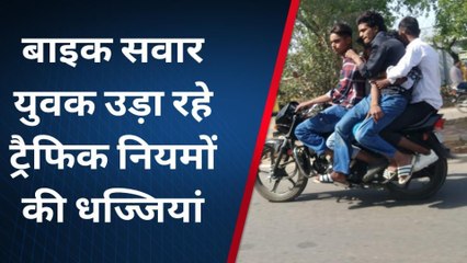 VIDEO: पांच बच्चों को बैठाकर फुल स्पीड में बाइक दौड़ाई, वाहनों को करता रहा ओवरटेक