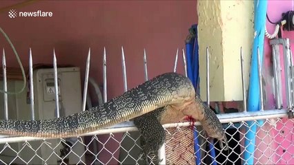 Wild monitor lizard rampages through Buddhist temple in Thailand