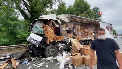 Kocaeli TEM Otoyolunda ahşap panel yüklü tır devrildi: 3 yaralı