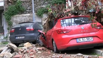 Beşiktaş’ta istinat duvarı çöktü: 3 araç hasar gördü