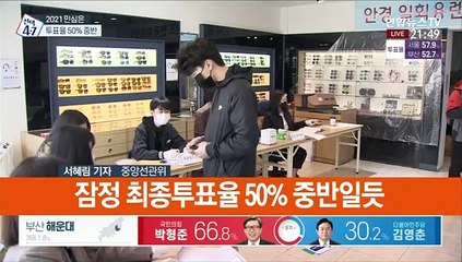 재보선 '역대 최고' 사전 투표율…최종 투표율 주목br br [앵커]br br 어제(3일) 끝난 4·7 재·보궐선거 사전투표가 역대 재보선 가운데 가장 높은 투표율을 기록하면서 최종 투표율에도 관심이 쏠리고 있습니다.br br 여야 모두 지지층을 투표장으로 끌어내기 위해 총력전을 벌이는 가운데 투표율이 선거 결과에 어떤 영향을 미칠지 주목되는데요.br br 이승국 기자입니다.br br [기자]br br 이틀간 진행된 4·7 재·보궐선거 사전투표율은 20.54.br br 역대 재보선 중 가장 높은 투표율인데, 여야는 서로 유리한 신호라는 해석을 내놨습니다.br br "저는 사전투표율이 높게 나오는 거에 대해서는 긍정적으로 보고 있습니다. 사전투표율에 대해서 간접적인 조사를 하시는 분들도 있었는데, 그분들의 반응도 나쁘지 않다는 거였어요."br br "이 정부의 그동안 잘못한 일에 대해서 이번 투표를 통해서 앞으로 잘 가도록 그런 경고의 메시지를 담기 위해서, 많이들 나오시는 것 아닌가…."br br 대선이 1년도 채 남지 않은 시점에서 치러지는 서울·부산시장 선거에 대한 높은 관심, 그리고 진영 간 양자 대결 구도가 분명해진 것이 높은 사전투표율의 원인으로 풀이됩니다.br br "진영별로 최대의 결집을 하고 있다는 명백한 반증이고요. 부동층도 상당 부분 가세하지 않고서는 이런 높은 투표가 나올 리가 없습니다."br br 정치권 안팎에서는 7일 본투표를 합한 최종 투표율이 50 안팎이 될 것으로 전망하고 있습니다.br br 일반적으로 보수 성향 유권자가 본투표를 선호하는 경향을 고려하면 최종 투표율이 50를 넘을 경우 야권에 유리한 결과로 이어질 수 있다는 관측도 있습니다.br br "(최종 투표율) 50가 넘는다는 것은 본 선거일 날 많은 참여가 이뤄졌다고 볼 수 있는 것이고, 국민의힘 후보 쪽에 기대를 가지게 만드는 최종 투표율의 결과로 추정 분석을 할 수가 있는 것이죠."br br 다만 일각에서는 이번 높은 사전투표율에 대해 사전투표 제도가 자리를 잡으면서 나타난 자연스러운 현상인 만큼, 크게 의미를 둘 필요는 없다는 분석도 나옵니다.br br 연합뉴스TV 이승국입니다.