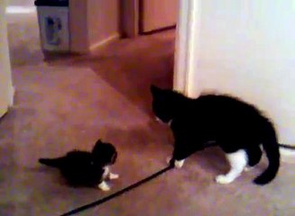 Cat Sitting on Kitchen Counter Smacks Dogs Face Every Time She Jumps