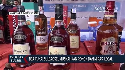 MAKASSAR, KOMPAS.TV - Kantor pengawasan dan pelayanan bea cukai makassar memusnahkan ratusan ribu batang rokok ilegal. Petugas bea cukai juga memusnahkan ratusan liter minuman keras dan cairan vape ilegal. br br Pemusnahan 800 ribu batang rokok ilegal dilakukan dengan cara dimasukkan ke dalam galian bersama dengan barang sitaan lainnya. Sebelumnya ratusan ribu batang rokok ilegal ini di sita petugas bea cukai dari sejumlah lokasi karena tidak memiliki pita cukai. br br Selain rokok petuga juga memusnahkan ratusan liter minuman beralkohol cairan vape dan dua ratus lima puluh delapan paket kirimkan lewat pos dari luar negeriyang tidak membayar cukai. Paket barang asal luar negeri dimusnahkan berupa sepatu boneka pakain dan alat bantu seks.
