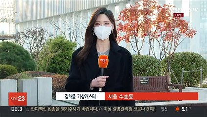 [날씨] 출근길 다시 영하권 추위…동해안 건조특보br br 밤사이 찬공기가 잔뜩 내려왔습니다.br br 다시 영하권 추위에 대비를 해주셔야 하는데요.br br 지금 이 시각 출근길, 이미 체감온도는 영하권을 보이는 곳이 많습니다.br br 서울 -2.7도, 남부지방도 안동이 -2.3도의 체감추위를 나타내고 있습니다.br br 오늘은 낮에도 내내 쌀쌀할 텐데요.br br 어제보다 기온이 2에서 많게는 5도가량 내려가겠습니다.br br 오늘 서울의 한낮기온 7도가 예상되고요.br br 대구는 12도에 그치겠습니다.br br 이제 주말을 앞두고 있어서 이번 추위 전망, 더욱 궁금하실 텐데요.br br 토요일과 일요일 모두 아침에는 서울 영하권이겠고요.br br 일요일 오후부터 차츰 찬바람이 잦아들기 시작해, 다음 주 초 일시 기온이 올랐다가 주 중반에 다시 추워질 전망입니다.br br 당분간 기온이 들쭉날쭉 하기 때문에 건강 잘 챙기셔야겠습니다.br br 오늘 전국의 하늘은 대체로 맑겠습니다.br br 다만, 대기의 건조함이 점점 더 심해지고 있고요.br br 동해안을 중심으로는 건조주의보가 발효 중입니다.br br 바다의 물결은 동해상을 중심으로 최대 3m까지 높게 일겠습니다.br br 주말과 휴일도 맑은 가운데 초겨울 추위가 계속되겠고요.br br 일요일 낮부터 일시 추위가 풀렸다가, 다음 주 화요일 전국에 눈과 비와 함께 다시 찬바람이 강해질 전망입니다.br br 날씨 전해드렸습니다.