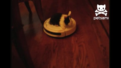 Cat Rides Around House on Robotic Vacuum Cleaner