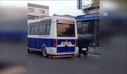Paten rampasına uzanan kızların üzerinde tehlikeli akrobasi