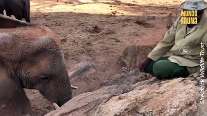 La vida de esta madre elefanta estaba en riesgo tras caer en un hoyo con su cría, por lo que fue necesario hacerle reanimación.