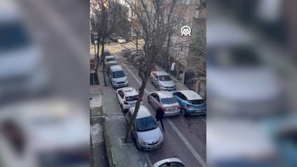 Arnavutköy’de park halindeki araçlara çarparak ilerleyen sürücü, aracını kendisini durdurmak isteyenlerin üzerine sürdü. O anlar çevredeki iş yerinin güvenlik kamerasına yansıdı.