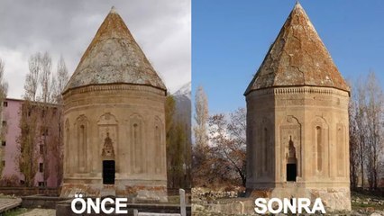 Van'da tarihi kümbetin silüetini bozan ağır hasarlı yurt binasının yıkımına başlandı