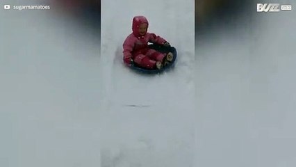 As schools across the UK shut due to snow, children make the most of the day off and bring their sleds to a nearby hill. One child said she was supposed to be sitting an English exam, but her school announced on Sunday night that it would close. br Report by Brooksl.