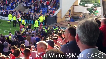 Shocking footage shows a police officer pushing a football fan to the ground