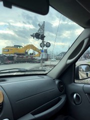 Occurred on February 27, 2023 Ringgold, Georgia, USAbr br : "The video takes place at a railroad crossing within the city limits of Ringgold, Georgia in the United States. A truck hauling a low bearing trailer gets stuck on the tracks right before the crossing guards come down. The train cannot stop fast enough and runs through the trailer and cargo. The driver of the vehicle was able to flee in time and was unharmed.