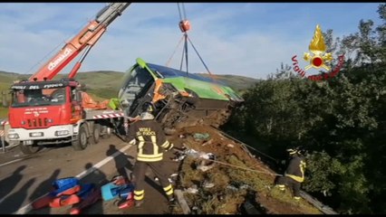 p (Adnkronos) - Ci sono volute diverse ore per recuperare dalla scarpata il bus della Flixbus precipitato stamane in una scarpata dopo il violento impatto, al Km 150 dell'autostrada A 16, che ha causato la morte di un uomo e il ferimento di altre 14 persone. Il pullman con 38 passeggeri a bordo è andato a schiantarsi contro 5 auto ferme dopo un tamponamento, ribaltandosi e finendo la sua corsa fuori strada. I vigili del fuoco di Avellino sono al lavoro sul posto dalle 4 di questa mattina.