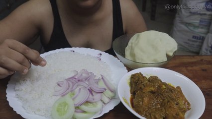 Eating White Rice, Paratha, Chicken Curry, Onion Salad, Pappad | Mukbang | Eating Show | ASMR Eating