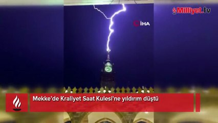 Suudi Arabistan’ın Mekke kentinde etkili olan şiddetli yağış sırasında Kraliyet Saat Kulesi'ne yıldırım düştü.