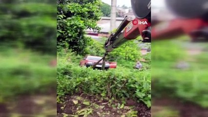 Faciadan dönüldü... Virajı alamayan araç çay bahçesine uçtu!
