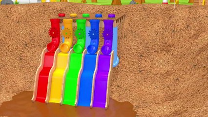 Learn Colors with PACMAN VS SchoolBus and Farm Magic Slide and Surprise Toy Street Vehicle for Kid