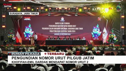 JAYAPURA, KOMPAS.TV - Mantan kapolda Papua, Mathius Derek Fakhiri bersama pasangannya Aryoko Rumaropen mendapatkan nomor urut 02, sementara pasangan Benhur Tomi Mano-Yeremias Bisai mendapatkan nomor urut 01 dalam pengundian nomor urut calon gubernur Papua. br br Komisi pemilihan umum Provinsi Papua menggelar rapat pleno pengundian dan penetapan nomor urut pasangan calon gubernur dan wakil gubernur Papua. br br Dalam pengundian yang digelar di halaman kantor KPU Papua, pasangan calon Gubernur Benhur Tomi Mano-Yeremias Bisai mendapatkan nomor urut 01, sementara pasangan Mathius Derek Fakhiri- Aryoko Rumaropen mendapatkan nomor urut 02. br br Calon Gubernur nomor urut 01, Benhur Tomi Mano mengatakan, nomor urut 01 ini merupakan sebuah tanda kemenangan, pasalnya saat mencalokan diri sebagai Walikota Jayapura pada tahun 2021 dirinya juga mendapat nomor urut 01 dan berhasil menjadi Walikota Jayapura selama dua periode. br br Sementara itu, calon gubernur nomor urut 02, Mathius Derek Fakhiri, mengaku bahwa nomor urut 02 merupakan simbol bahwa kedamaian. Untuk itu mantan kapolda Papua ini menghimbau seluruh kandidat dan penyelenggara untuk menciptakan pilkada damai.