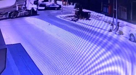 Otomobil ile çarpışan servis minibüsünün yan yattığı kaza kamerada