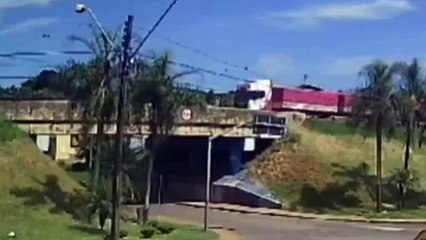 Caminhão-tanque explode após colisão em viaduto na PR-092 e deixa dois feridos em Arapoti