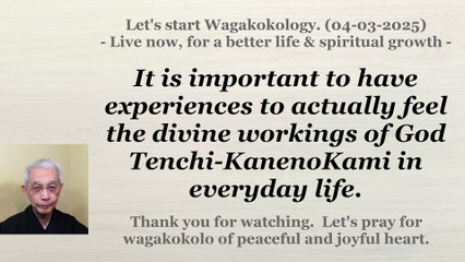 Putting the teachings into practice, we will receive the divine workings of God Tenchi-KanenoKami. 04-05-2025