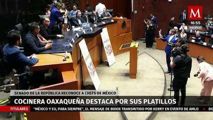 Lea Zalazar recibiendo el reconocimiento de la CAME en el Senado de la Nación